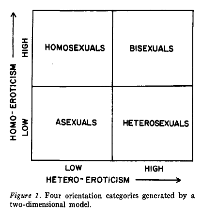 1. 성지향성의 스펙트럼에서 무성애가 어떤 식으로 위치하는지를 설명하는 모델.