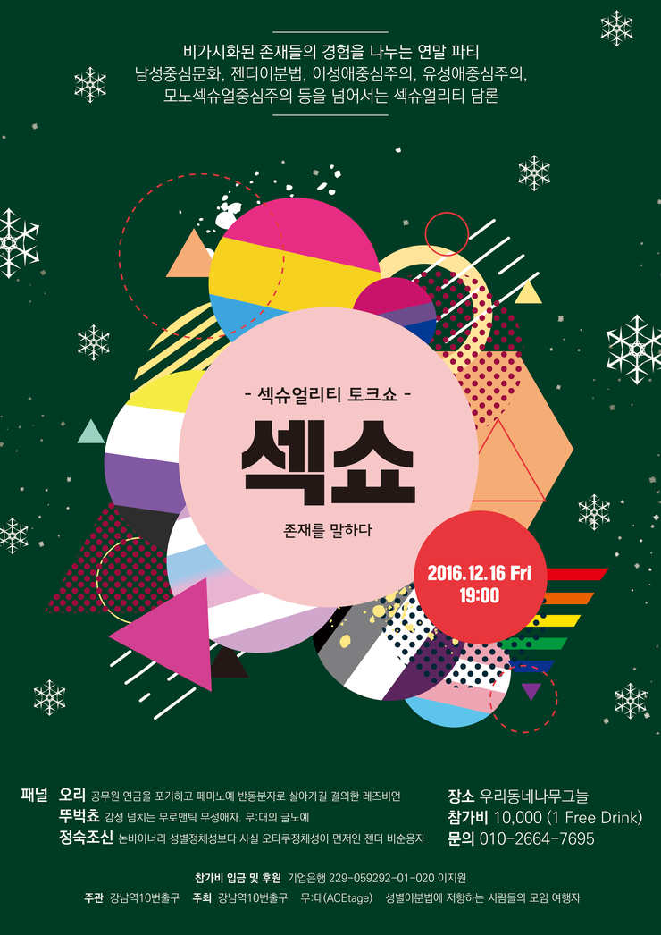 섹슈얼리티 토크쇼, "섹·쇼 - 존재를 말하다"는 남성중심주의와 젠더이분법, 이성애중심주의, 유성애중심주의, 모노섹슈얼중심주의 등을 넘어 우리의 존재를 가시화하고, 우리의 목소리를 담아내는 토크쇼입니다.